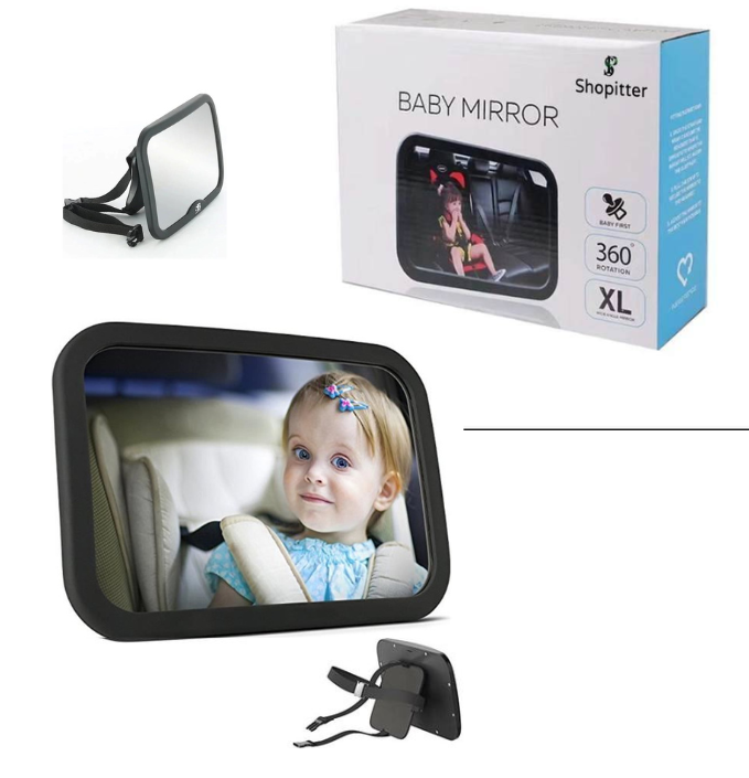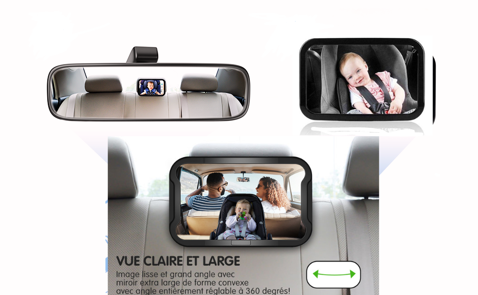 Marque Shopitter Ce miroir, généralement rectangulaire, est équipé d'un système de fixation robuste et sécurisé sur l'appuie-tête du siège arrière. Sa taille généreuse assure une vision étendue du bébé sans entraver la visibilité du conducteur. Fabriqué à partir de matériaux résistants et sécurisés, le miroir est conçu pour être incassable en cas d'impact.